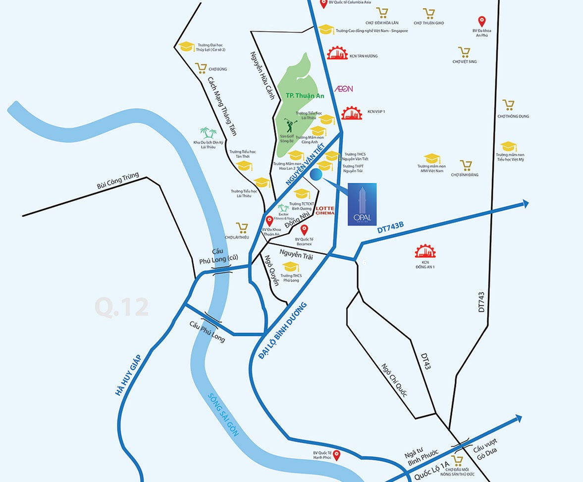 Opal Skyline nằm ngay trục Nguyễn Văn Tiết – Đại lộ Bình Dương, giúp kết nối nhanh đến: