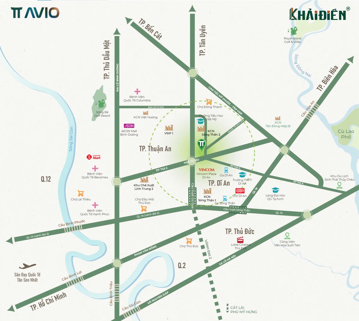 TT Avio là khu căn hộ cao cấp mang phong cách Nhật Bản tọa lạc ngay trung tâm TP. Dĩ An, Bình Dương. Dự án được phát triển bởi TT Capital kết hợp cùng các đối tác Nhật Bản như Cosmos Initia và Koterasu, mang đến chuẩn sống hiện đại, tinh tế và tối ưu không gian. TT Avio hướng đến mô hình sống “chuẩn Nhật” – chú trọng chất lượng, tiện nghi và sự cân bằng giữa công việc và cuộc sống.